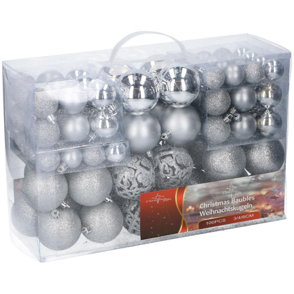 Ez a 100 ezüstgömbből álló készlet tökéletes megoldás egy elegáns és egységes karácsonyi dekoráció létrehozásához. A készlet különféle mintákban és felületekben – matt, fényes, áttört és csillogó – található gömbdíszeket tartalmaz, így feltűnő kompozíciót hozhatsz létre. A különböző méretű gömbdíszeknek köszönhetően ez a készlet jól mutat mind a nagy karácsonyfákon, mind a kisebb díszeken. Tartós és könnyű anyagból készültek, a gömbdíszek törésállóak, így ideális választást jelentenek gyermekes és háziállatos otthonokba!