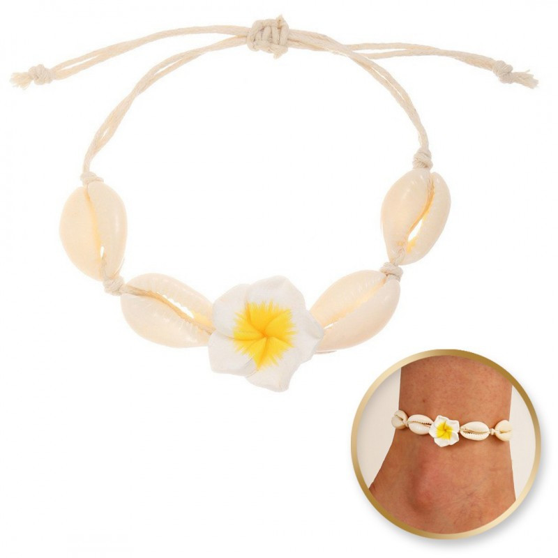 2 az 1-ben karkötő lábra és kézre, zsinóron, KAGYLÓK és HAWAII VIRÁG B542ZO