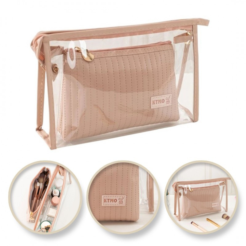 2 az 1-ben púderrózsaszín átlátszó kozmetikai táska szett KS102WZ2