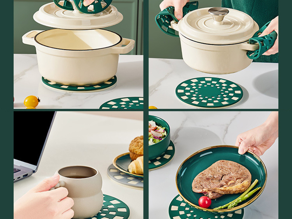 A kiváló minőségű szilikonból készült párna hőállóságot mutat - nem olvad meg, nem deformálódik és nem bocsát ki szagokat. Biztonságosan használható a közvetlenül a tűzhelyről vagy a sütőből kivett főzőedények alatt, anélkül, hogy félni kellene a munkafelületek károsodásától.