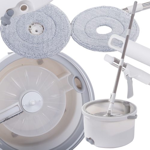 Fedezze fel a tisztítás új minőségét a spin moppal - egy innovatív forgó felmosórongy, amely a fejlett kétkamrás rendszernek köszönhetően elválasztja a tiszta és a piszkos vizet a higiénikus és hatékony padlótisztítás érdekében.