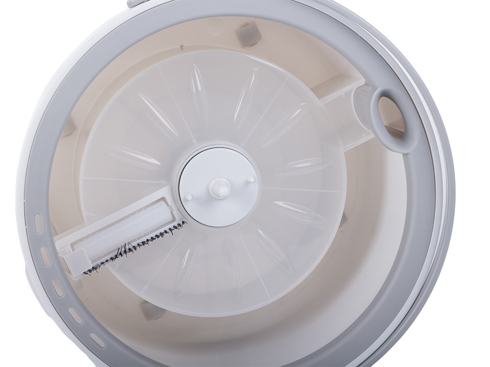 Az innovatív pörgetőmechanizmus lehetővé teszi, hogy a felesleges víz hatékonyan eltávolítható legyen a mikroszálas párnáról, anélkül, hogy elektromosságra vagy piszkos kézre lenne szükség. Egyszerűen helyezze a felmosót a megfelelő kamrába, és nyomja le, hogy kipörgesse a piszkos vizet, majd nedvesítse meg a párnát tiszta vízzel.