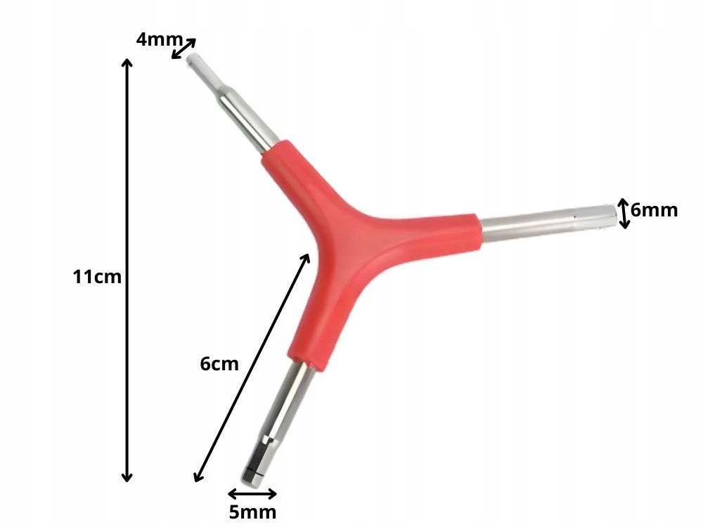 Funkcionális, Y alakú imbuszkulcs, amely lehetővé teszi a kerékpár csavarjainak gyors és kényelmes meghúzását vagy kicsavarását. A hármas kialakításnak köszönhetően egy szerszámban három vég található, így nem kell több különböző kulcs ot használni a munkához.