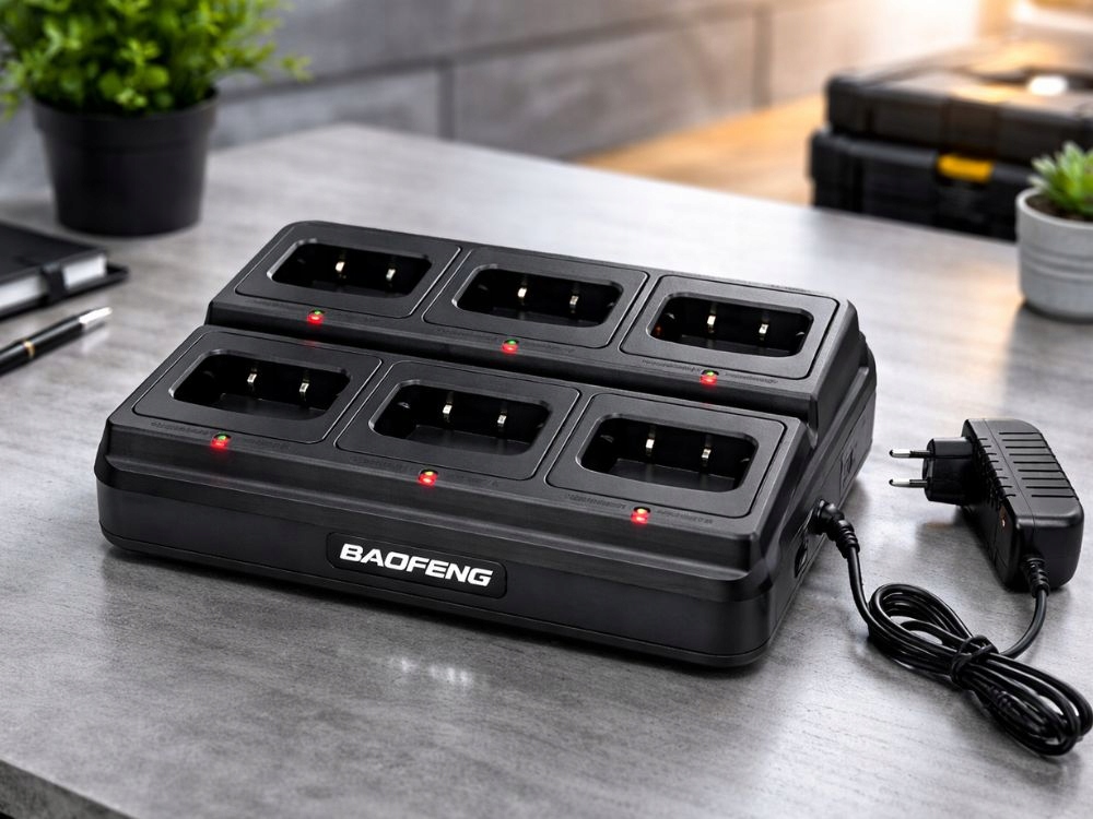 A Baofeng dokkolóállomás akár 6 rádió egyidejű töltését islehetővé teszi , ami jelentősen megkönnyíti a munkaszervezést. Ideális megoldás csapatok, biztonsági cégek vagy építőipari munkacsoportok számára. Nincs többé kábelrengeteg és különálló töltők.