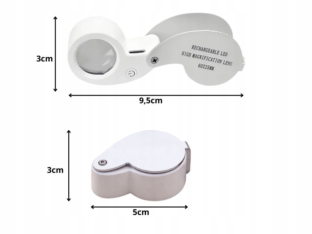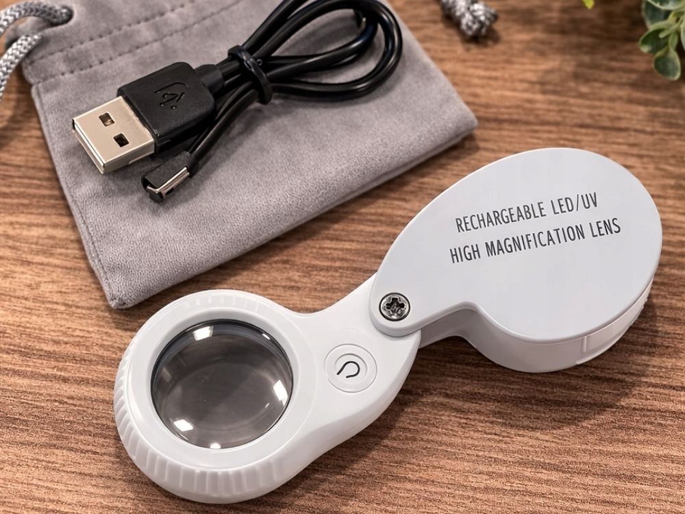 60-szoros nagyítású, összecsukható, usb-ről tölthető, led-es uv ékszerész nagyító olvasáshoz