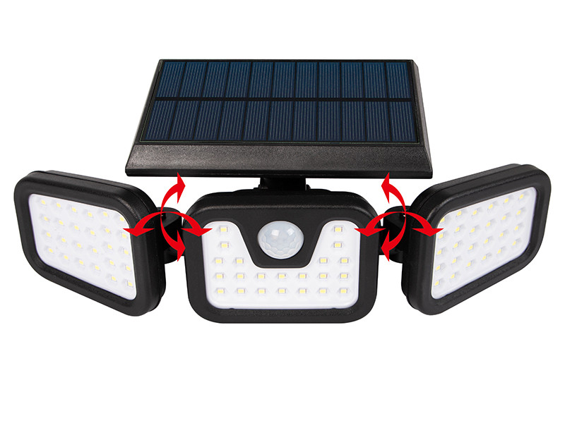 67-495# Napelemes utcai lámpa 3 reflektorral + érzékelővel