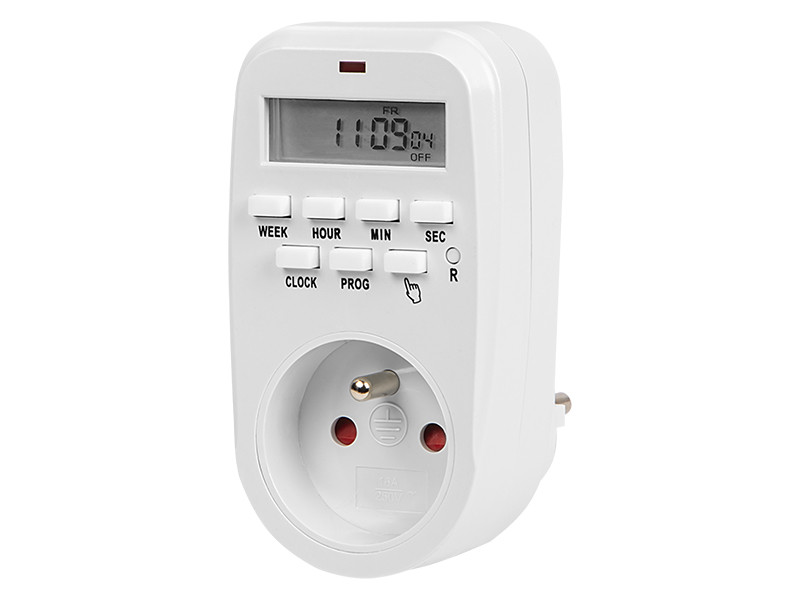 A készülék működése nagyon egyszerű - csak csatlakoztassa a programozót egy elektromos aljzatba, majd csatlakoztassa a kiválasztott eszközt az időzítő aljzatába. Az előlapon található gombok segítségével állítsa be a konnektor bekapcsolásának megfelelő időpontját – konkrét napok is beállíthatók.
