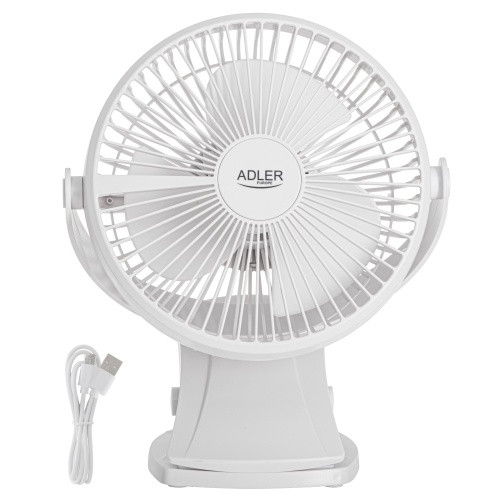 AD 7342 fehér asztali ventilátor csipesszel | újratölthető | 15,5 cm | 360°-os forgatás | usb-c |