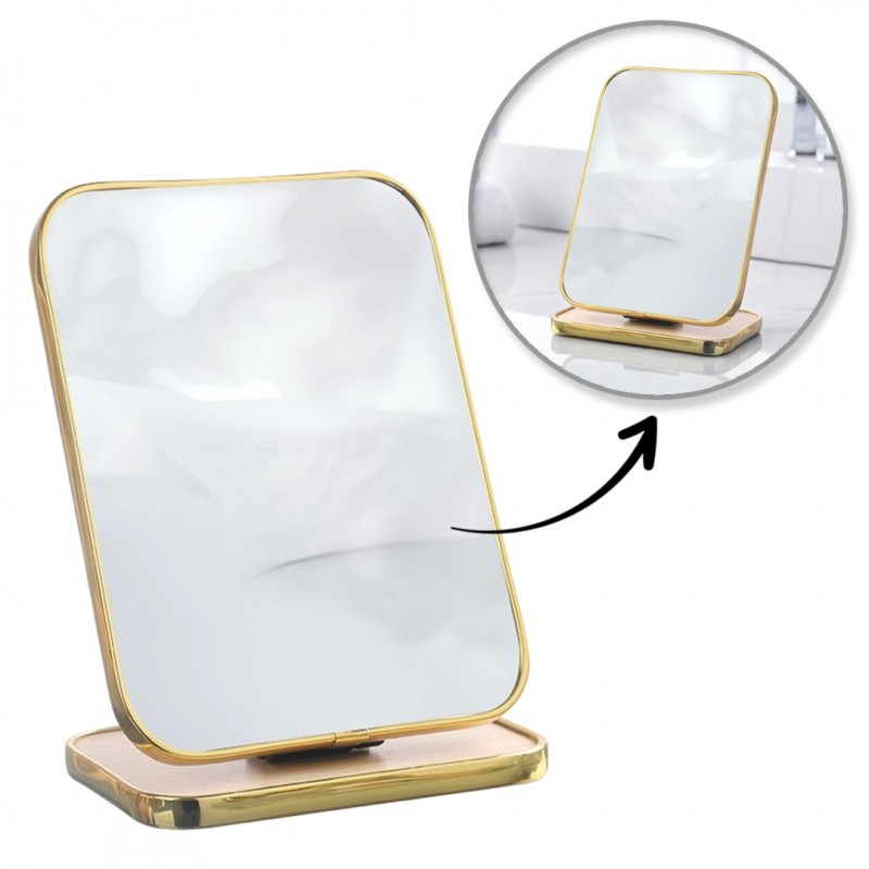 Álló kozmetikai fa tükör, téglalap alakú, arany keretben 15 x 20 cm L19