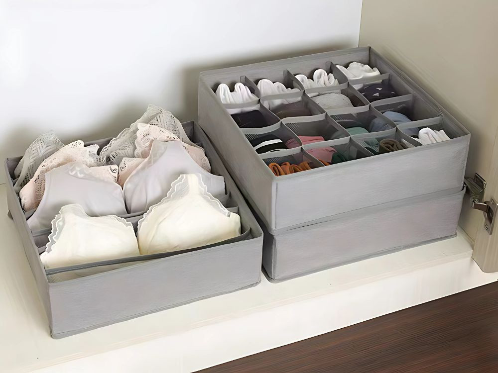A szervezők különböző rekeszek kialakításával rendelkeznek, így nagyobb ruhadarabok és kisebb ruhadarabok tárolására egyaránt alkalmasak. Tökéletesen illeszkednek a fiókokba, gardróbszekrényekbe és öltözőszekrényekbe, segítve a helyrendezést és a helytakarékosságot. Lehetővé teszik, hogy gyorsan megtalálja a kívánt darabot anélkül, hogy az egész fiókot át kellene kutatnia.