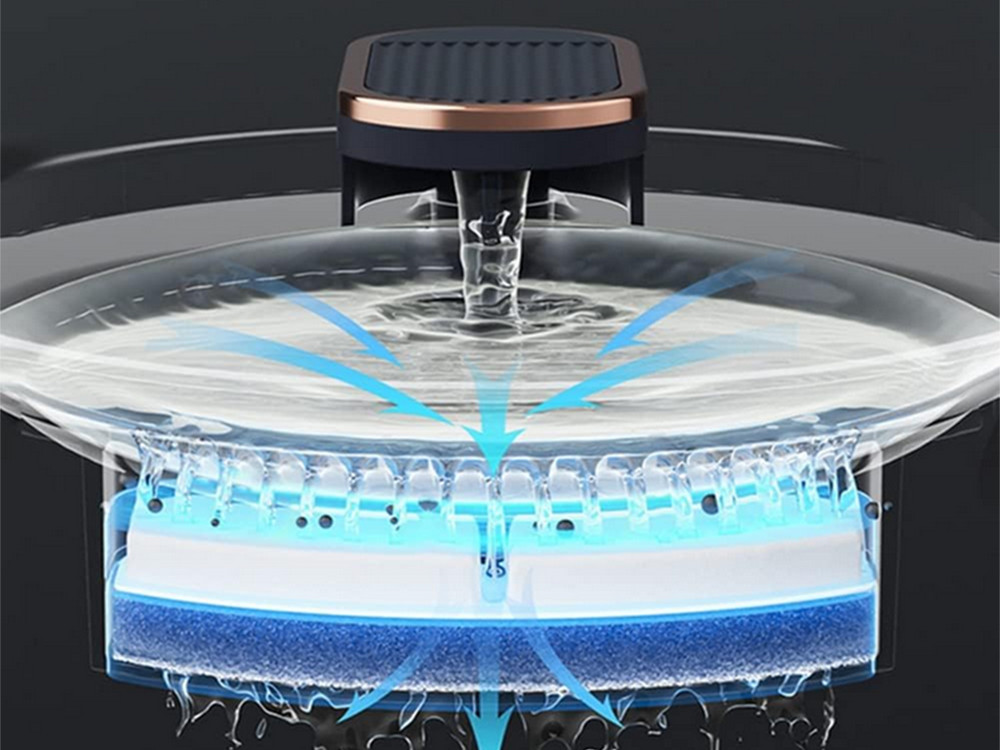 Kedvence egészségének megőrzése érdekében a készülék cserélhető aktívszén-szűrőkkel van ellátva, amelyek megtisztítják a vizet a szennyeződésektől és szükséges ásványi anyagokkal dúsítják. A szűrő eltávolítja a vízből a szőrt, az ételmaradékokat és megakadályozza a vízkő lerakódását.