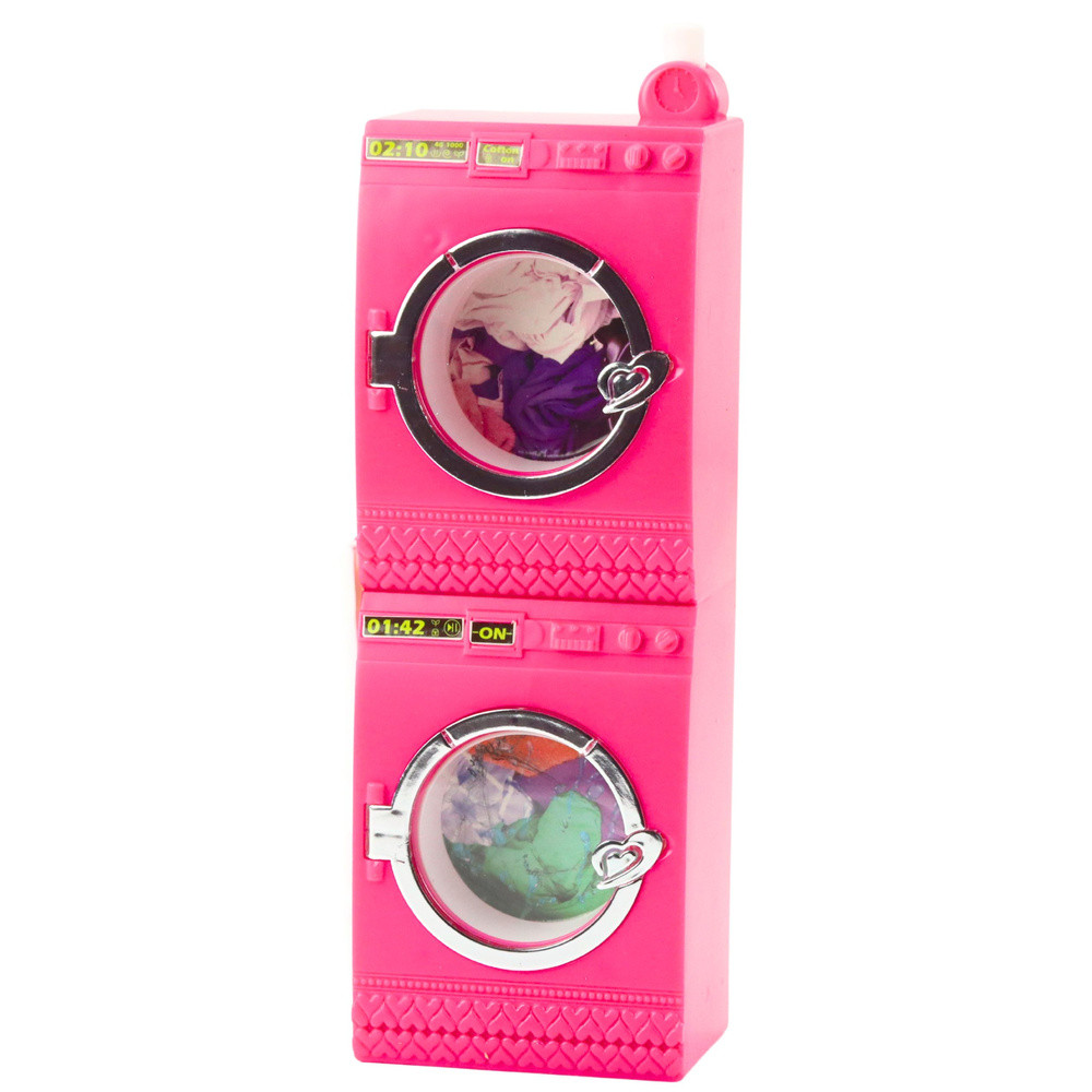A mosógép egy gombnyomásra forgó dob funkcióval rendelkezik, amely dinamikus játékot biztosít, és lehetővé teszi a gyerekek számára, hogy megfigyeljék a "mosás" folyamatát. Az akasztó lehetővé teszi a ruhák felakasztását, a szennyestartó kosár pedig egy praktikus elem, amely tovább fokozza a szórakozást. A készlet mosószereket utánzó elemeket és egy fogaskészletet is tartalmaz, amelyek megkönnyítik a baba ruhatárának rendszerezését.