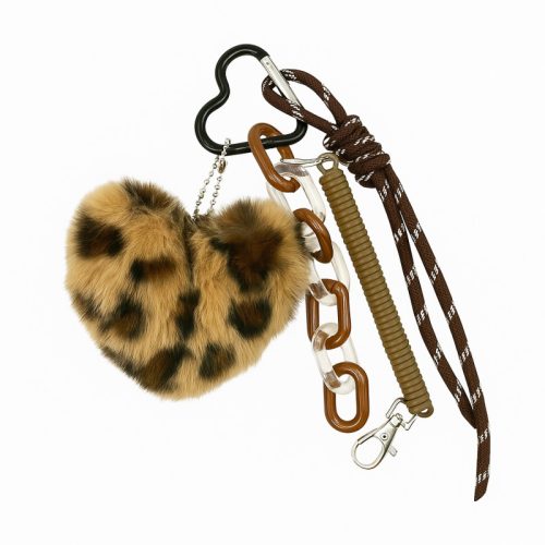 Bolyhos plüss szív alakú párduc kulcstartó BRL382