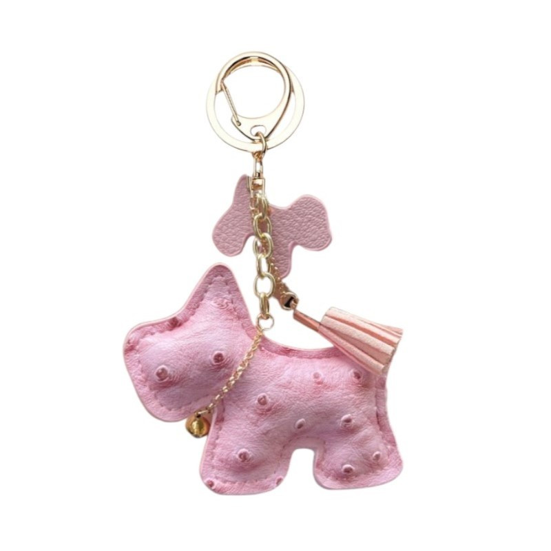 Bőr kulcstartó KUTYA rózsaszín, rojtos BRL355