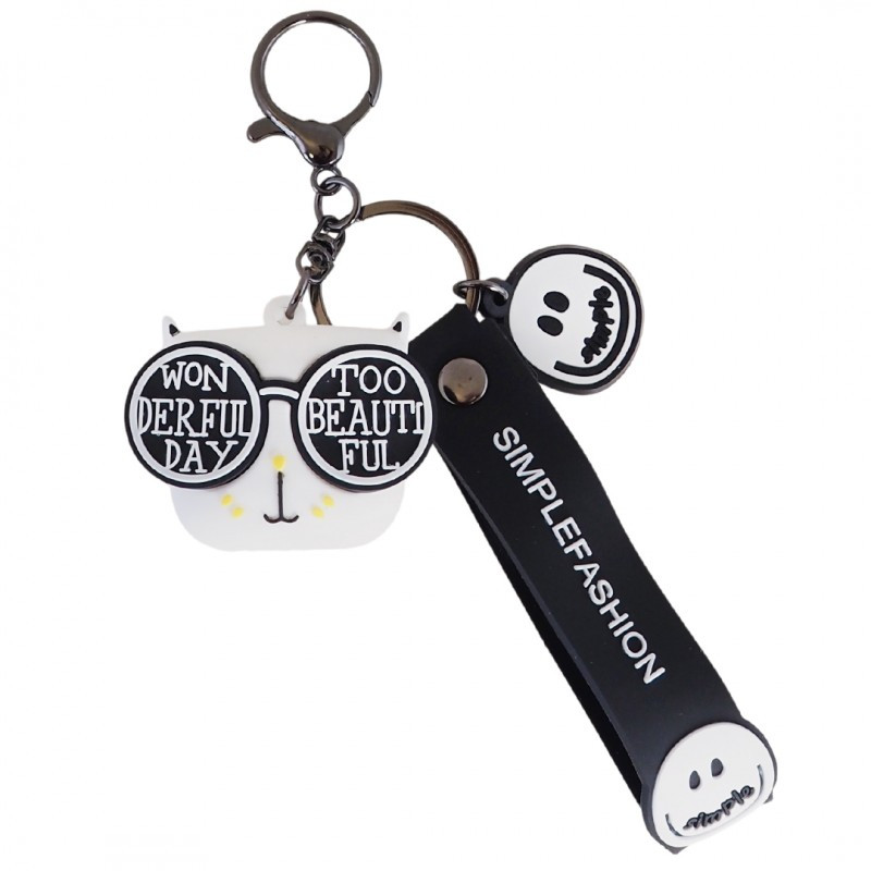 CSODÁLATOS NAP Macska szemüveges kulcstartó fehér 5.2 x 4.5 cm BRL331B