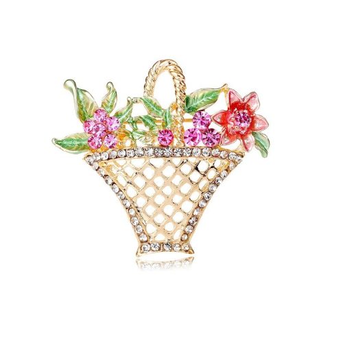 Dekoratív bross kristálykosár virágokkal BZ137