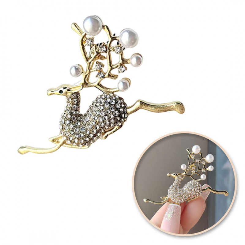Dekoratív kristály bross FEHÉR SZARVAS BZ178