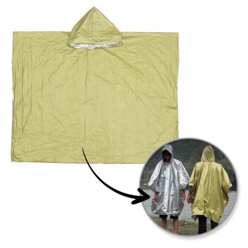 Termo esőkabát kapucnival. Megfordítható kialakítás: az eleje vízálló, szélálló és meleg. A hátulján lévő fényvisszaverő anyag megkönnyíti a megtalálást. A PE alumínium fólia rugalmassá és szakadásállóvá teszi az esőkabátot. Megerősített varratokkal rendelkezik, amelyek megakadályozzák a szivárgást és javítják a minőségét. Az esőkabát elég nagy ahhoz, hogy eltakarjon egy hátizsákot. A termék egy zsákba van csomagolva, amely bármilyen formára összehajtható. Magaddal viheted sporteseményekre, zenei fesztiválokra vagy kempingezésre autóban, hátizsákban vagy zsebben. Specifikációk: - Vízálló és szélálló - Megfordítható - Kompakt: zsákba csomagolva - Hőszigetelő réteggel rendelkezik - Szín: Zöld Méretek: 130 x 100 cm Méretek a csomagolásban: 16 x 10 x 3 cm Tömeg: 59g nettó / 72g bruttó