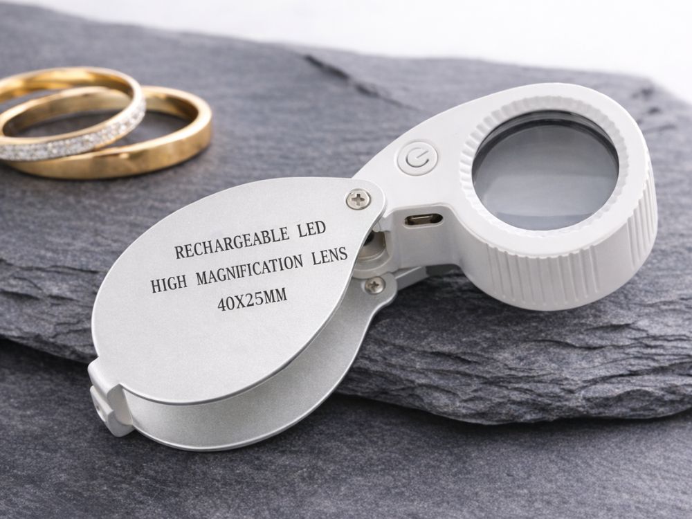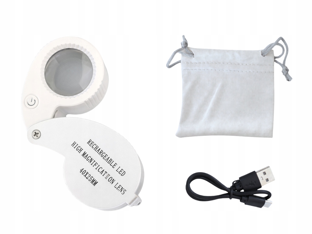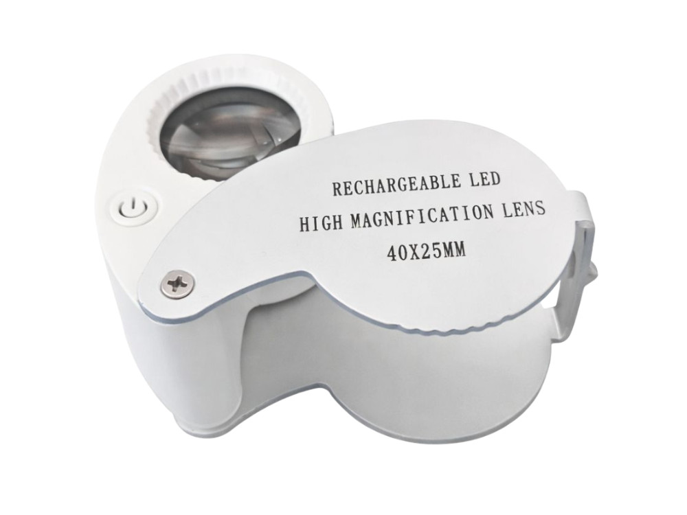 ÉKSZERÉSZ NAGYÍTÓ, 40-SZERES NAGYÍTÁS, ZSEBES, Összcsukható, 25 mm-ES, 9 LED-ES