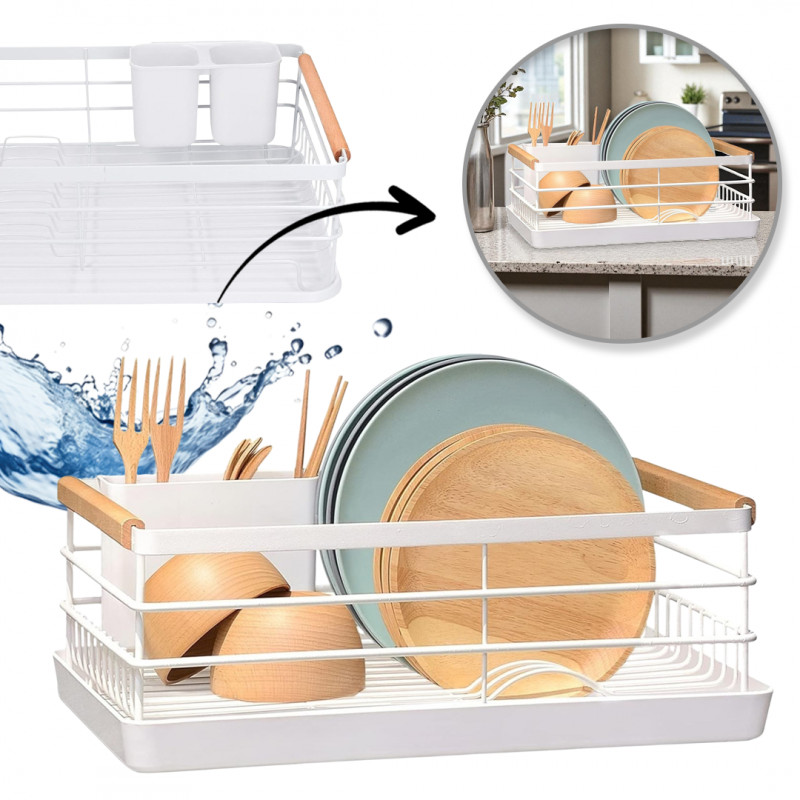 MOSOGATÓGÉP CSÖPPENTŐ Ez egy nélkülözhetetlen kütyü minden otthonban. Nincs több rendetlenség! A kivehető tálca megkönnyíti a víz kiöntését és a tisztítást. A csöpögtető univerzális színű, így bármilyen konyhai dekorációhoz illik. A csöpögtető egy további tartállyal rendelkezik evőeszközök és konyhai eszközök számára. Nagyszerű mind a nagy, mind a kis konyhában. Ez hihetetlenül kényelmessé teszi az edények rendszerezését mosogatás közben. MÉRETEK: 43cm x 30,5cm x 14cm Termék súlya: 1560g