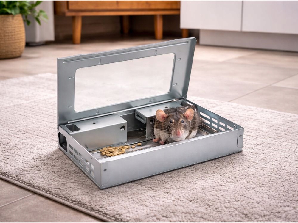 A csapda könnyen előkészíthető a használatra – egyszerűen helyezze be a csalit, és állítsa be a záró mechanizmust. Miután a rágcsáló befogásra került, biztonságosan elszállítható egy másik helyre.