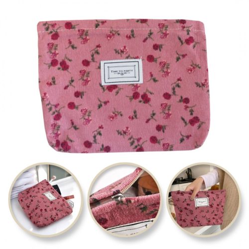 Egyrekeszes rózsaszín kozmetikai táska piros virágokkal 25 x 5 x 18 cm KS118