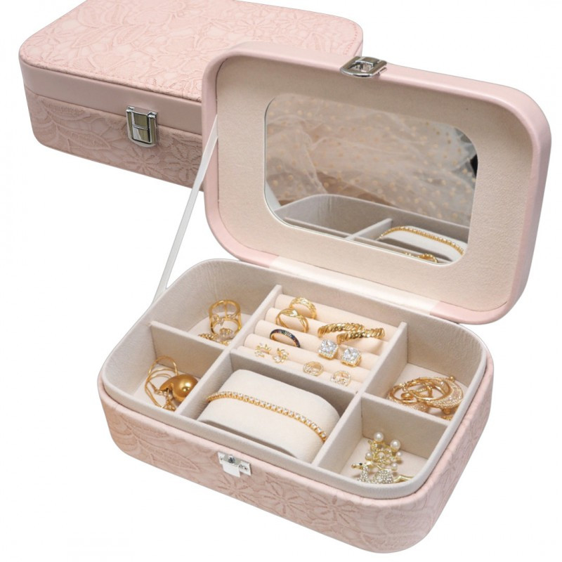 Ékszerdoboz, tok, szervező, rózsaszín csipkés doboz PD157R
