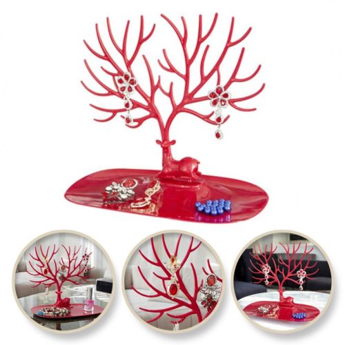 Elegáns ékszertartó. Egy nagyon érdekes, terebélyes fa formájú tartó. Elegáns és nem szabványos. Magasfényű. Méretek: - magasság: 21,5 cm - teljes szélesség 25 cm - mélység 15 cm. Anyaga: Műanyag.