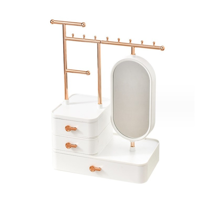 Ékszerrendező, fehér szekrény tükörrel és fiókokkal, PD60B