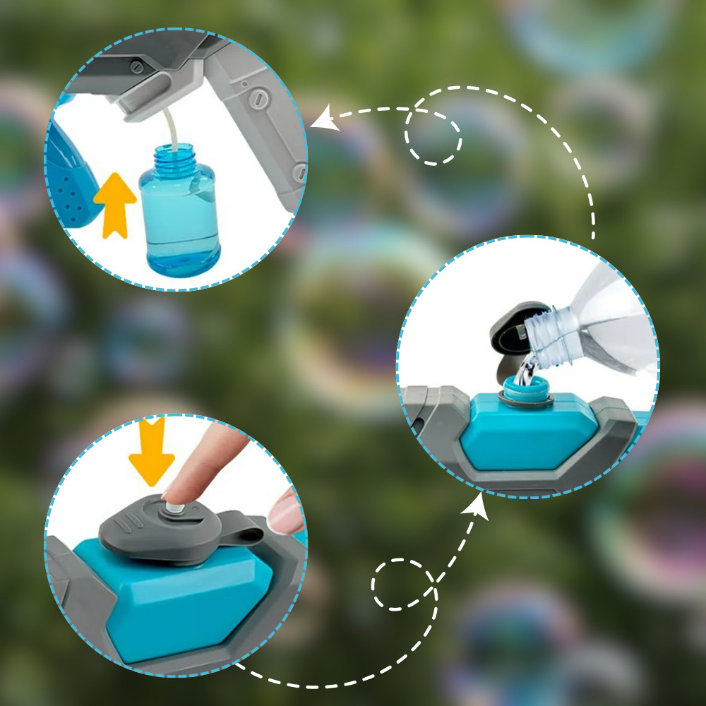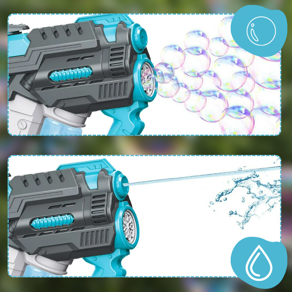✅Nagy elektromos víz- és buborékpisztoly 2 az 1-ben - Felejthetetlen szórakozás - gyerekeknek és felnőtteknek egyaránt.
