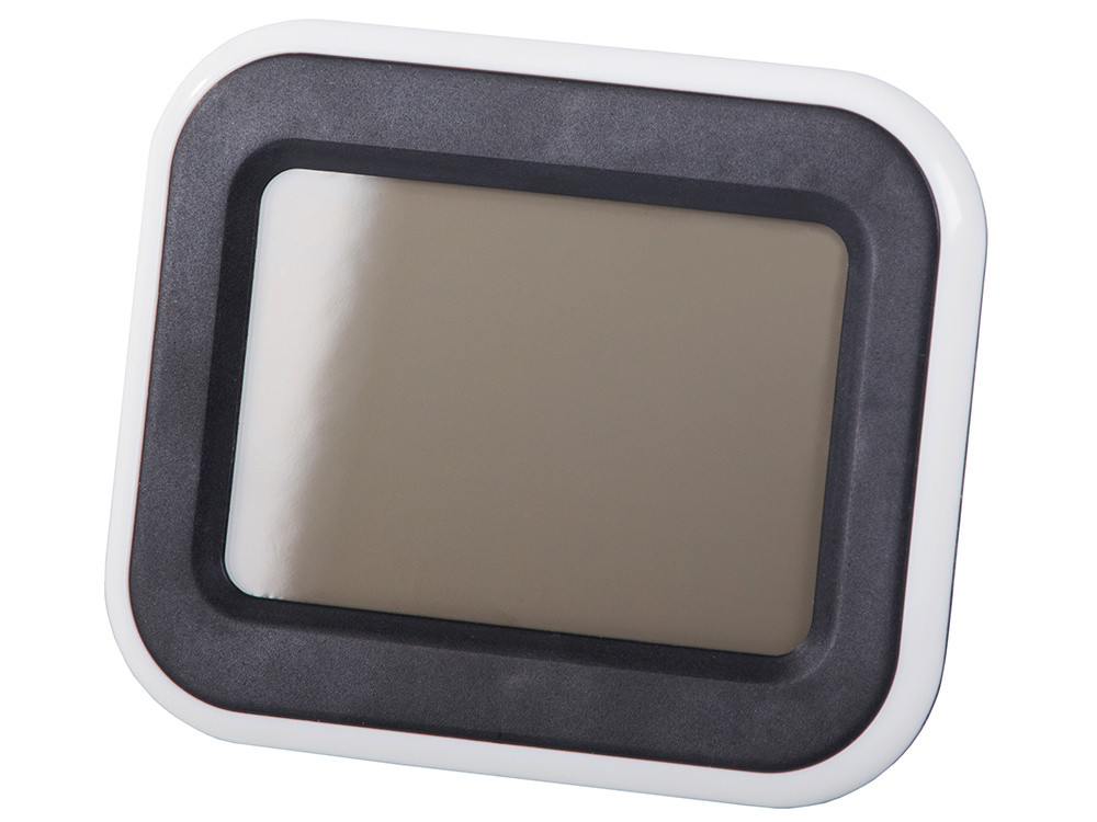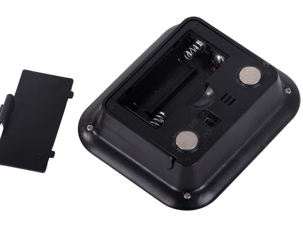 A készüléknek van egy kihúzható állványa az asztalra helyezéshez és egy erős mágnes a hátoldalán a hűtőszekrényhez vagy fémszekrényhez való rögzítéshez. Minden funkció - óra, ébresztő, időzítő (visszaszámlálás és visszaszámlálás) - könnyen kezelhető, maga a termék pedig két AAA elemmel működik (nem tartozék).