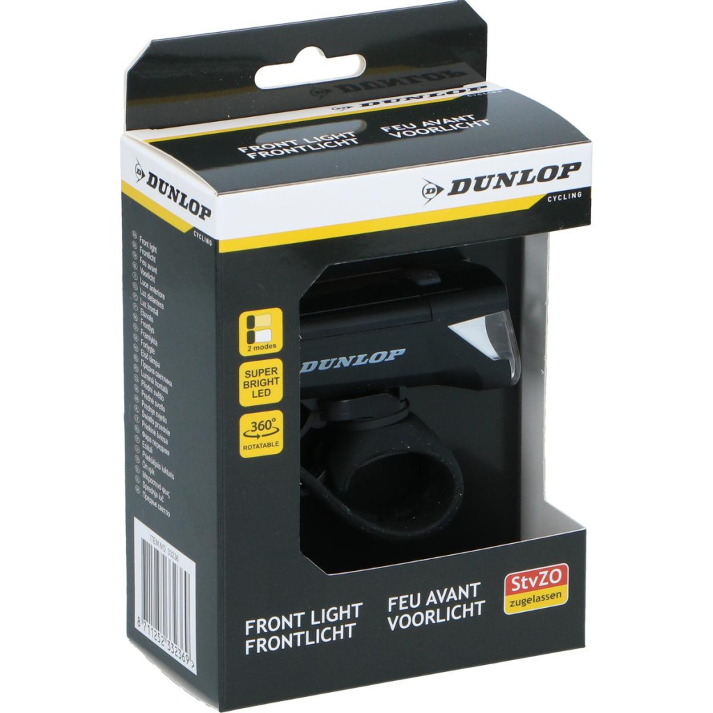 A DUNLOP MINŐSÍTETT 2 ÜZEMMÓDDAL RENDELKEZŐ ELSŐ KERÉKPÁRLÁMPA megbízható felszerelés minden kerékpáros számára - a magas minőséget a praktikus megoldásokkal ötvözi. CE minősítésének és IPX4 vízállóságának köszönhetően minden időjárási körülmény között működik, a két világítási mód pedig lehetővé teszi a fényintenzitás útviszonyokhoz való igazítását.