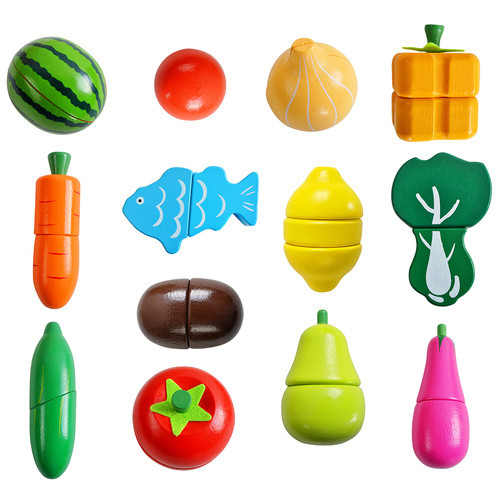 Fa zöldség-gyümölcs vágódeszka játékkészlet, 34 db