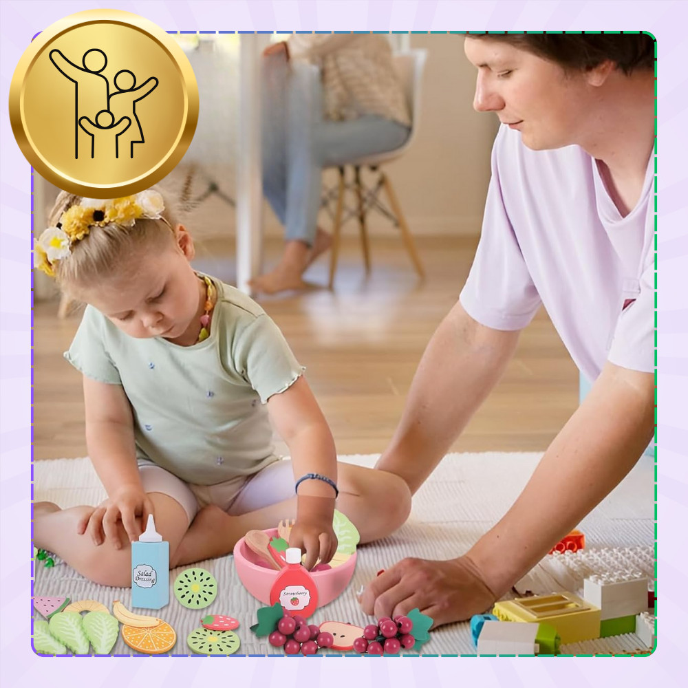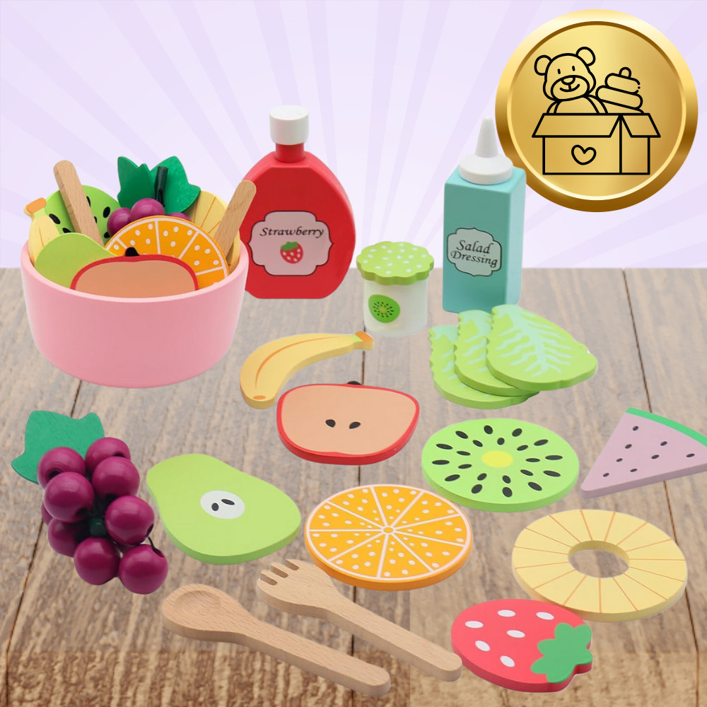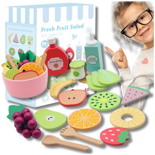 ⭐Fából készült gyümölcskészlet tálvilla gyerekeknek Oktató játék saláta