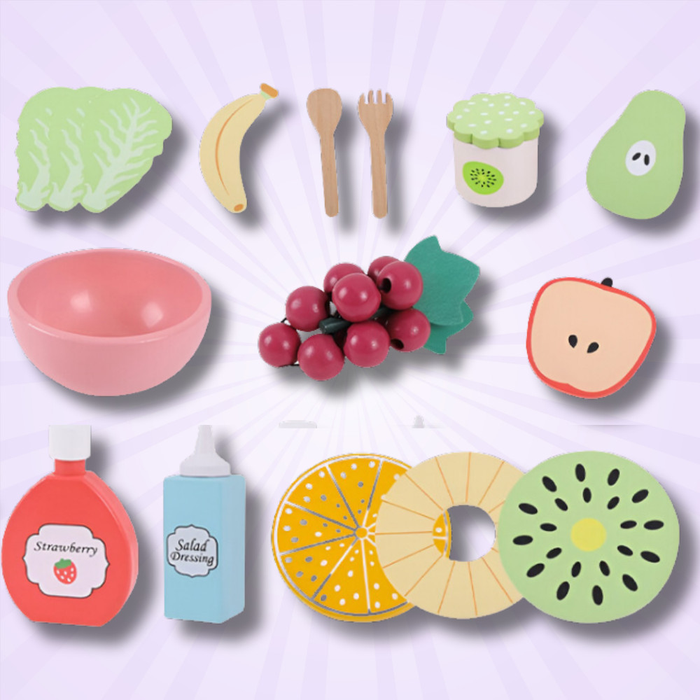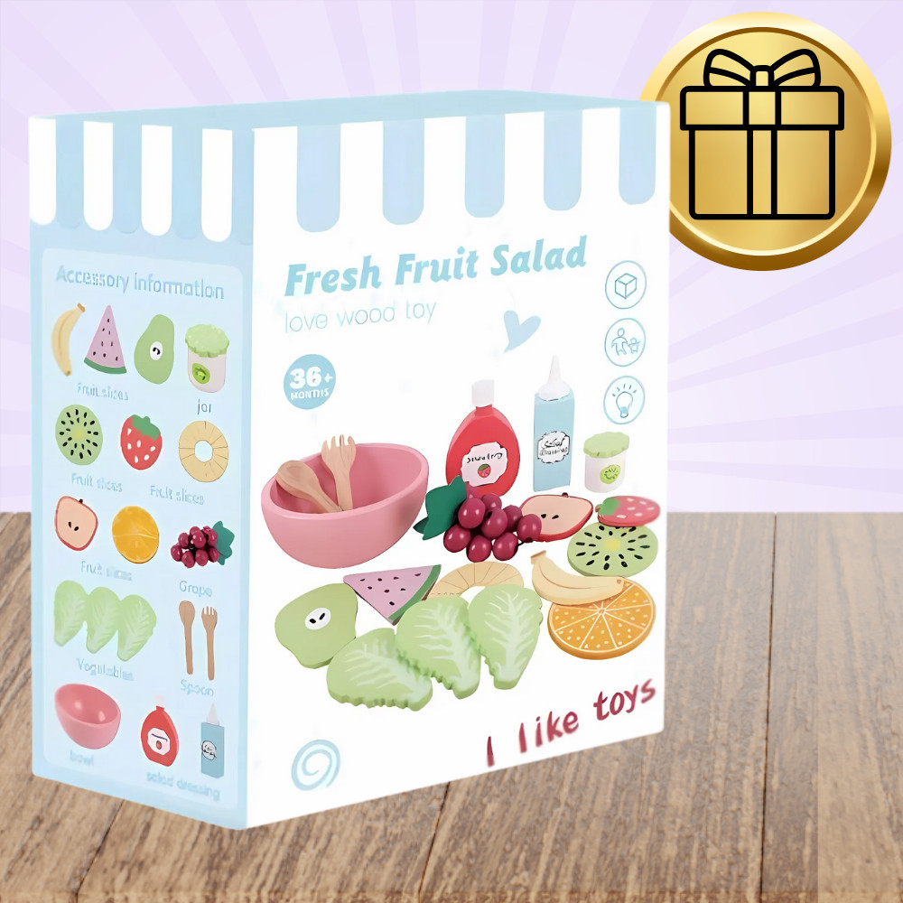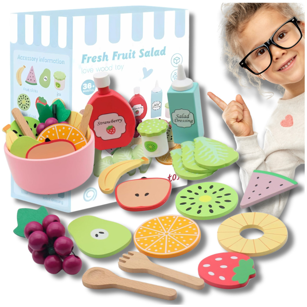 ☘️Fedezd fel ezt a csodálatos, fából készült gyümölcskészletet gyerekeknek, amely ötvözi a szórakozást az egészséges étkezésről való tanulással! A készlet különféle gyümölcsöket, evőeszközöket és kiegészítőket tartalmaz, így gyermeked saját színes gyümölcssalátákat készíthet, miközben elsajátítja az egészséges életmód alapelveit. Ez a tökéletes játék, amely támogatja a kreativitást, fejleszti a kézügyességet és bevezeti kisgyermekedet a kulináris kísérletek világába.