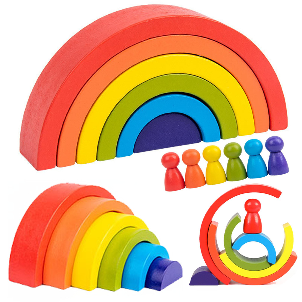 A színes szivárványos kirakós blokkok tökéletes játékok a legkisebbek számára a színek tanulásához.
