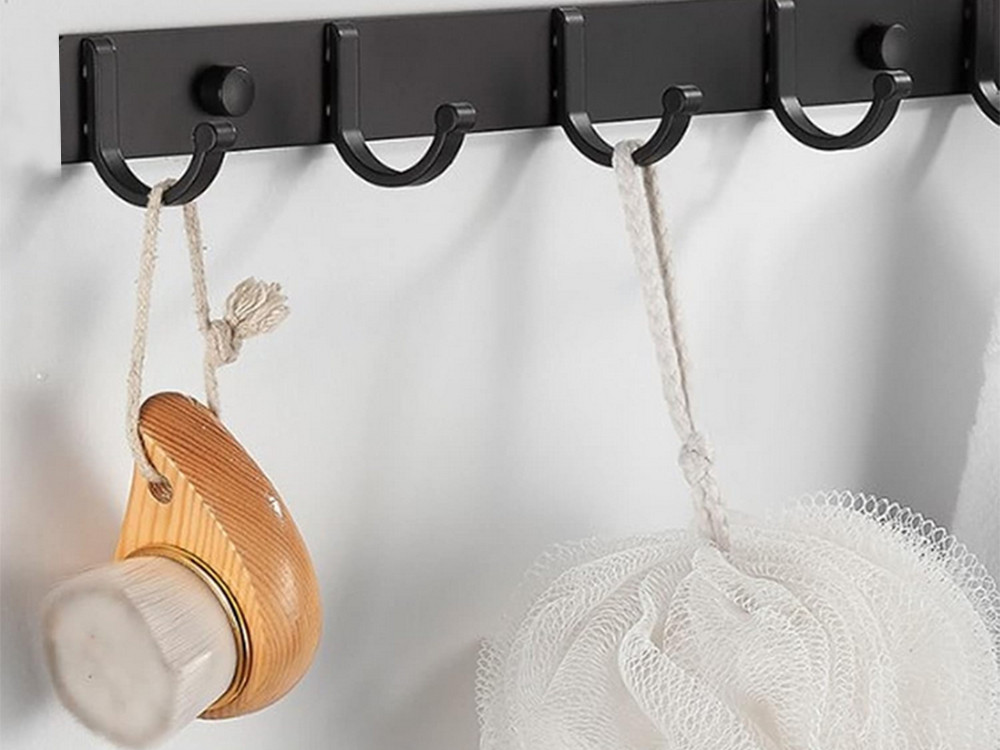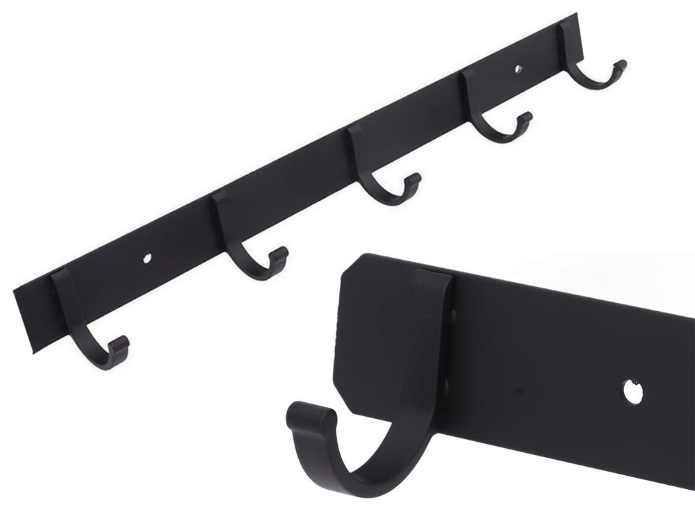 Fali ruhatartó állvány előszobába fürdőszobába 5 horgok fekete