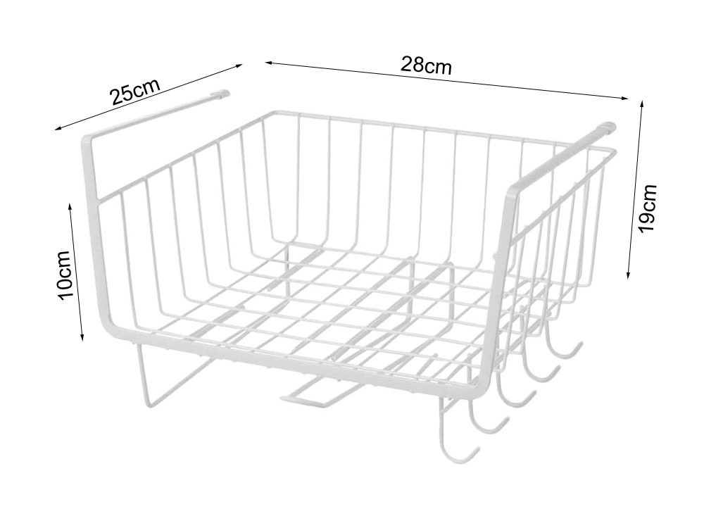 Egyszerűen csúsztassa be egy meglévő polc alá , hogy azonnal további helyet nyerjen az edények, fűszerek, konyhai kiegészítők vagy más apró tárgyak számára. Ez a fehér színű, robusztus fém szervezőkosár funkcionalitás és esztétikum egyben!