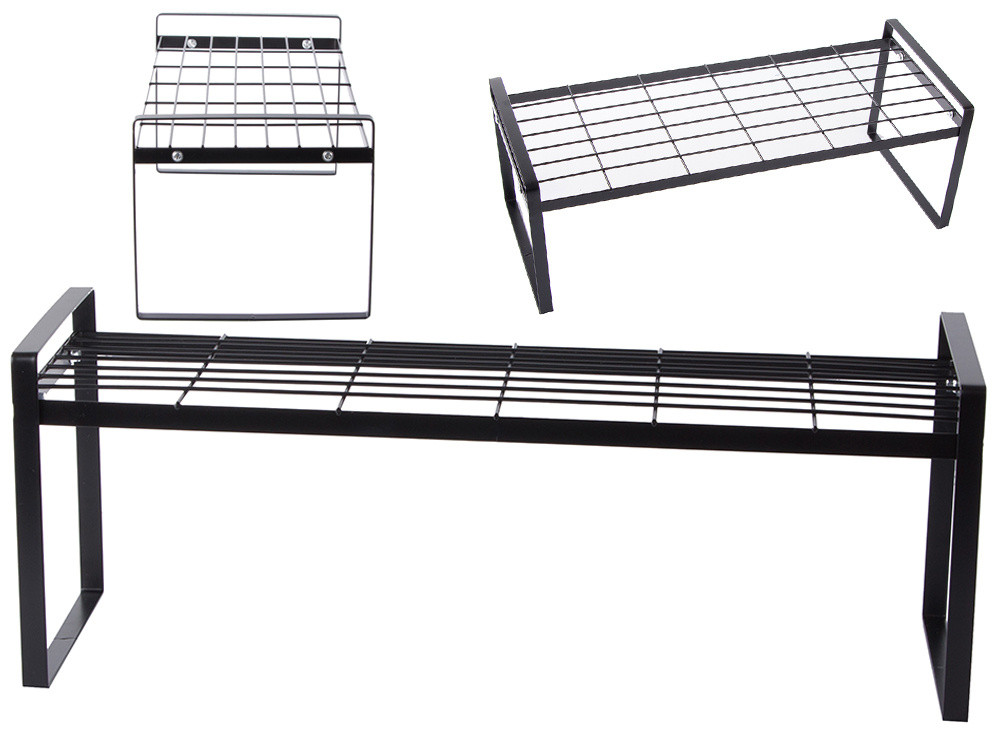 FÉM POLC EGYSZINTES KONYHAI SZERVEZŐ ÁLLVÁNY FEKETE KONYHÁBA