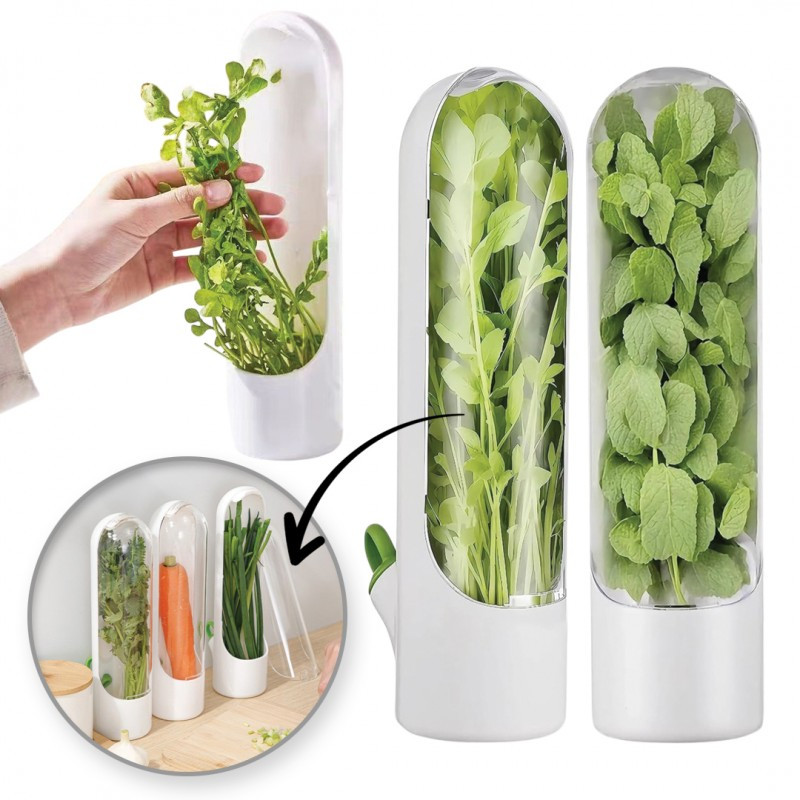 FRISS ZÖLDSÉG- ÉS FŰSZERNÖVÉNYTARTÓ HŰTŐBE. Ez a tartály jó vízálló tömítéssel rendelkezik, amely segít fenntartani a megfelelő páratartalmat a fűszernövények és zöldségek számára, meghosszabbítva frissességüket. Használat: Öblítse le és szárítsa meg a kiválasztott fűszernövényeket (pl. bazsalikom, menta, metélőhagyma stb.), majd helyezze őket a fűszernövénytároló kapszulába. Zárja le az előlapot, amíg kattanást nem hall. Öntsön friss vizet a tartályba a levehető töltősapkán keresztül. Győződjön meg róla, hogy a gyökerek elmerülnek a vízben a maximális hatékonyság érdekében. Megjegyzés: A legjobb eredmény elérése érdekében ne felejtse el 3-5 naponta cserélni a friss vizet. Specifikációk: - Tökéletes tartály bármilyen hűtőszekrénybe - Újrafelhasználható tartály - Szín: Fehér / átlátszó - Anyag: műanyag - Kartondobozban csomagolva Méretek: 25 x 6,5 cm Csomag méretei: 26 x 8,5 x 8,5 cm Tömeg: 135 g nettó / 190 g bruttó