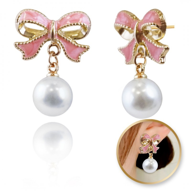 Függő fülbevalók, szemet gyönyörködtető gyöngygolyók masnikkal, K1691