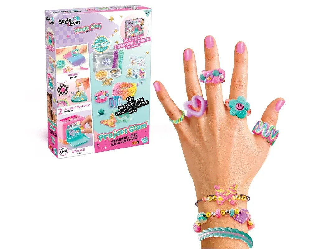 Bővítsd ékszergyűjteményedet a Bizu Studio utántöltő készlettel. A különleges agyagnak köszönhetően divatos gyűrűket, karkötőket és medálokat készíthetsz pontosan úgy, ahogyan megálmodtad. Válassz színeket, kombináld őket, formázd belőlük a kívánt formákat, majd süsd ki a kreatíválóban, és viseld is őket!