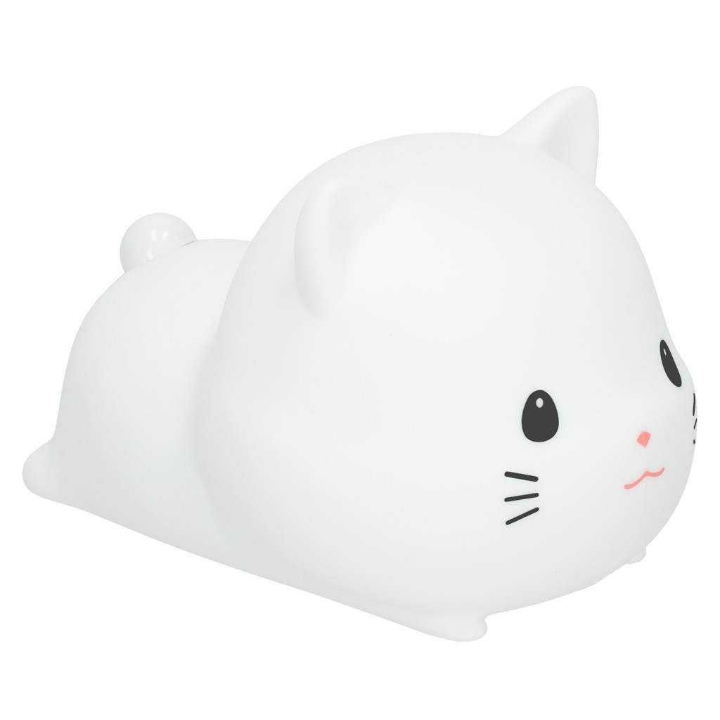 Gyerek éjszakai fény szilikon tapintású puha USB fehér fekvő macska