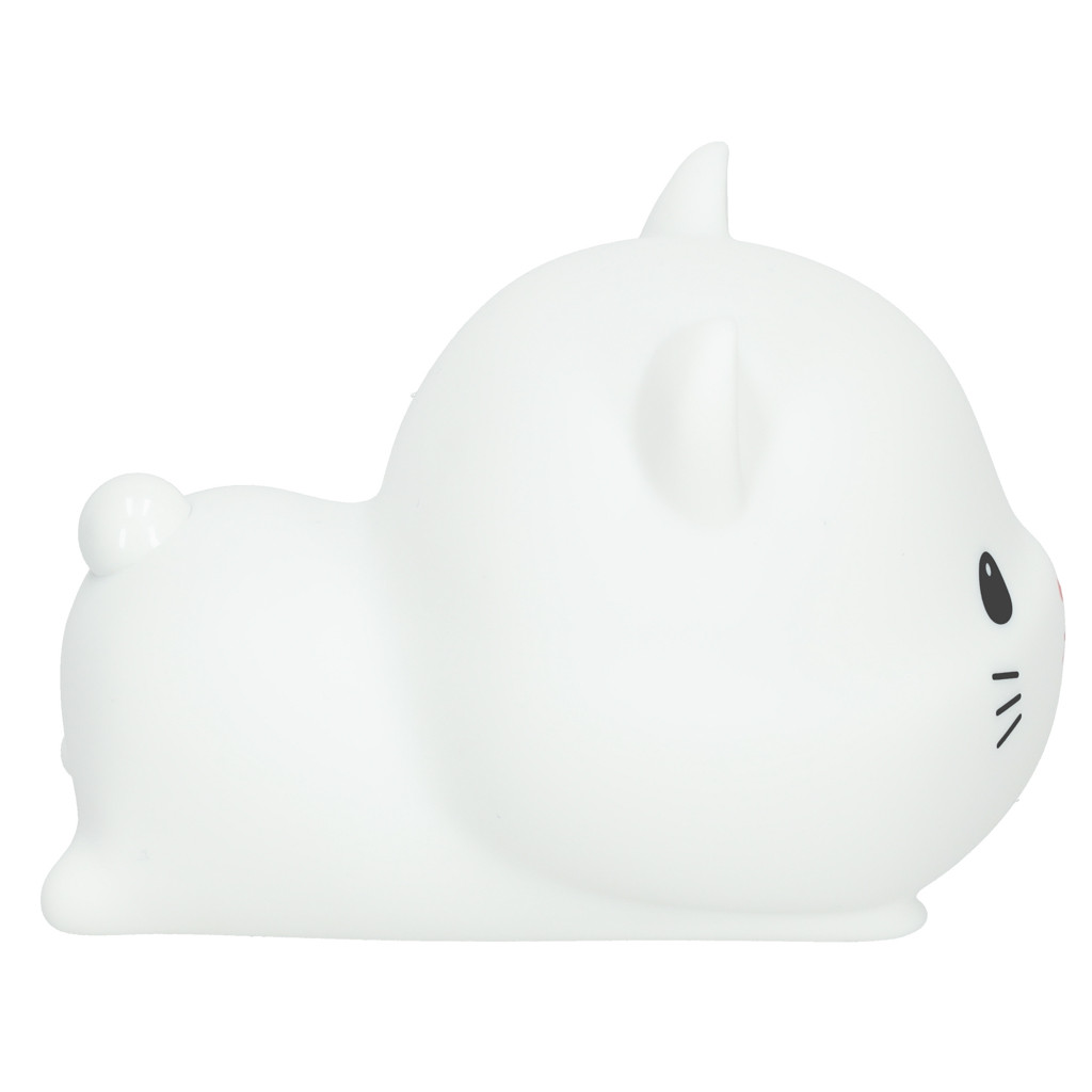 GYERMEK ÉJSZAKAI LÁMPA SZILIKON USB FEHÉR FEKVŐ CICA