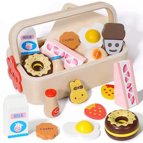 Ez a fa reggelizőkészlet tökéletes ajándék óvodáskorú gyermekeknek, akik szeretnek főzni, és azoknak, akik fejleszteni szeretnék finommotoros készségeiket.A játék nemcsak szórakoztató, hanem tanulságos is, mivel a gyerekek megtanulják az egészséges étkezést és az ételkészítést.