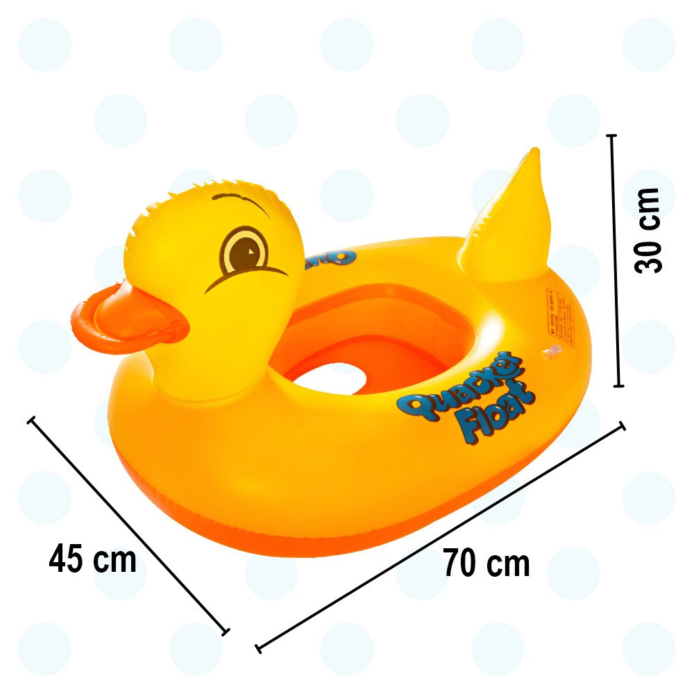 A matrac kényelmes és biztonságos a gyerekek számára, két 11 cm átmérőjű láblyukkal rendelkezik, amelyek megakadályozzák, hogy a gyermek kiessen a vízben való játék közben. Az ülőke nyílásának méretei kb. 24 cm x 30 cm.