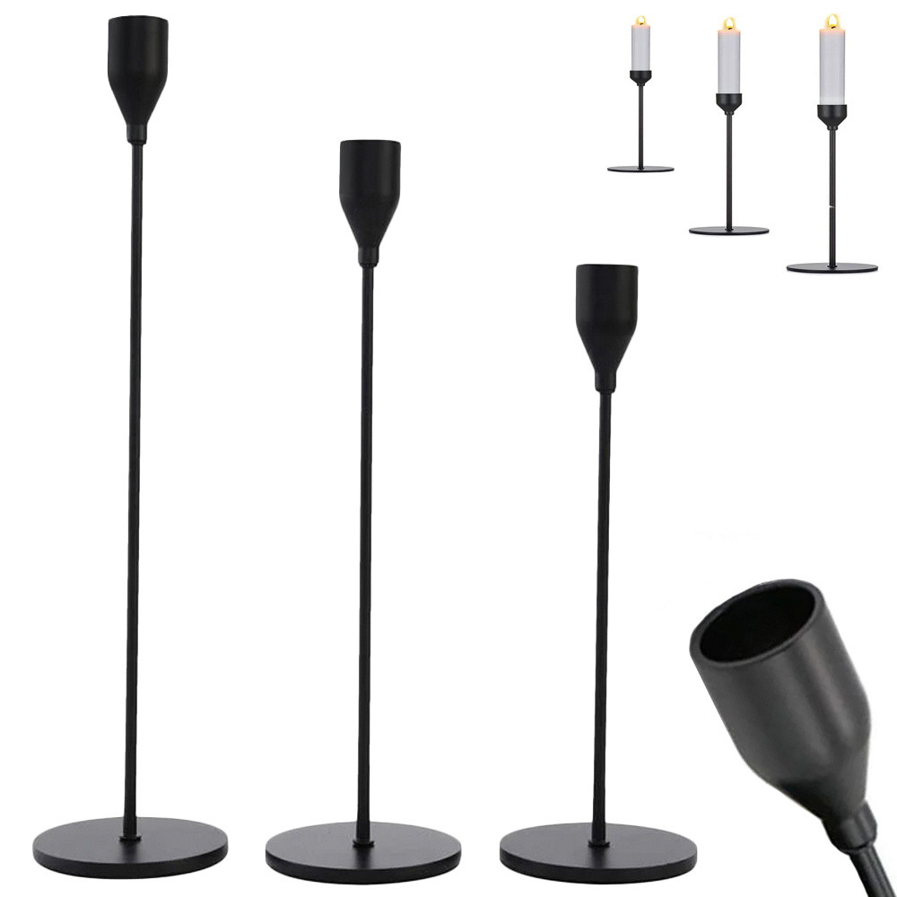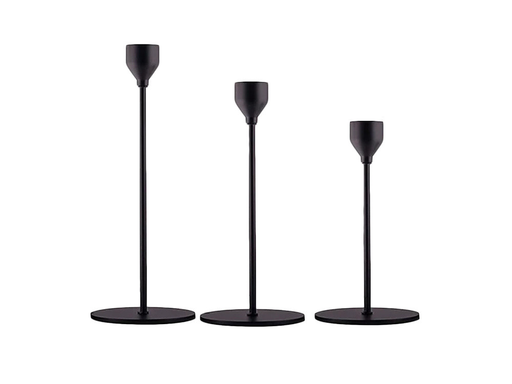 A gyertyatartók kiváló minőségű fémből készültek, matt fekete színű porszórt bevonattal, ami biztosítja a karcállóságot és a hosszú élettartamot. A masszív talp garantálja a stabilitást, még magasabb gyertyák esetén is . Az egyszerű, de átgondolt kialakításnak köszönhetően ideális dísze lehet egy asztalnak, komódnak, ablakpárkánynak vagy polcnak.