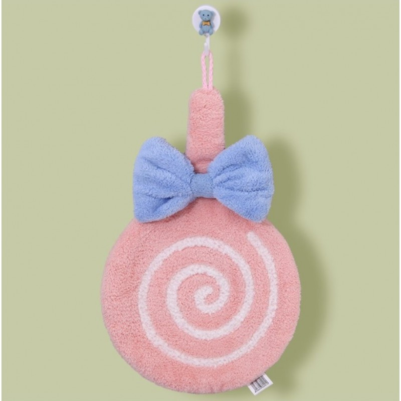 Gyorsan száradó, zsinóros kéztörlő - nyalóka mintás, masnival. Bájos és rendkívül nedvszívó kéztörlő. 20%-kal több vizet szív fel, mint egy hagyományos törölköző. Praktikus akasztóval, nedvszívó képesség: 5-10 másodperc. Méretek: 30 cm x 20 cm. Anyag: Mikroszál.