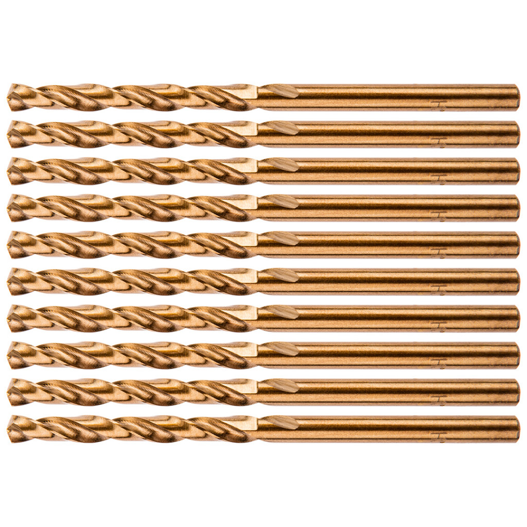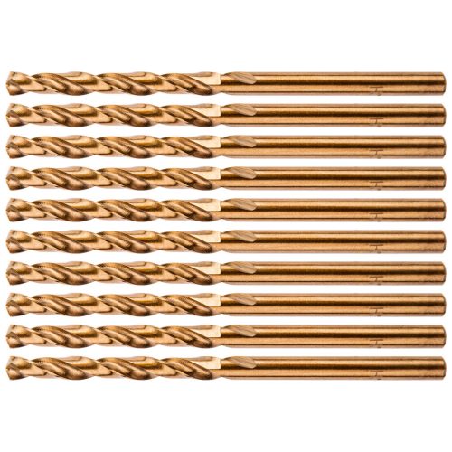 HSS-Co fémfúró, átmérő 4,2 mm, mélyen köszörült, anyaga M35 acél, csúcsszög 135°, letöréskorrekció C, DIN338, munkadarab hossza 43 mm, teljes hossz 75 mm, maximális fordulatszám INOX 875-950 ford/perc, fém 1750-1900 ford/perc, 10 darab