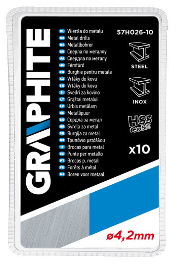 HSS-Co fémfúrófejek, 4,2 mm, 10 darabos készlet, mélyen köszörült, M35 acél, 135°-os csúcsszög, letöréskorrekció, DIN338
